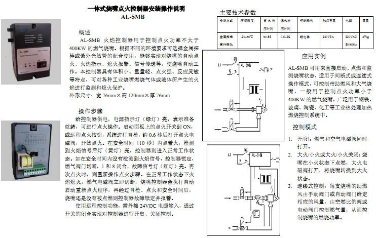 AL-SMBignition控制器用以气体和液体燃料的点火和燃烧,火焰检测,熄火保障,有两组“正常”和“故障”信号输出,远程控制和分段控制。它普遍用以工业和商贸燃烧器的控制。具备高效,节能,安全的特色。